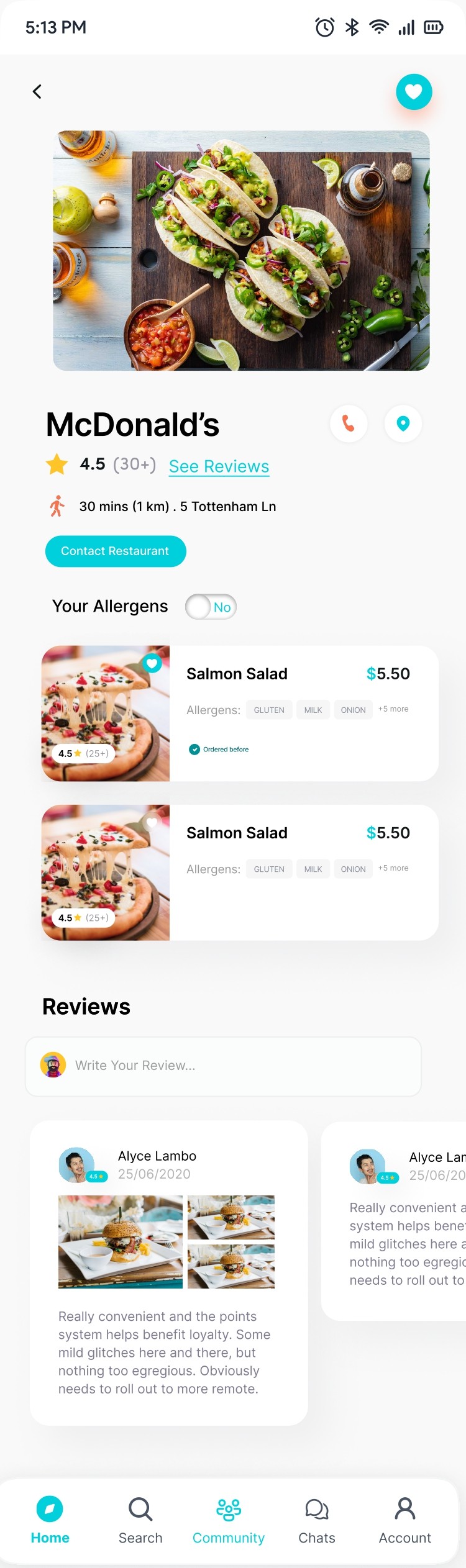 Have a question? Reach out to restaurants directly through the app, so you can confirm allergen details and choose where to dine with total peace of mind